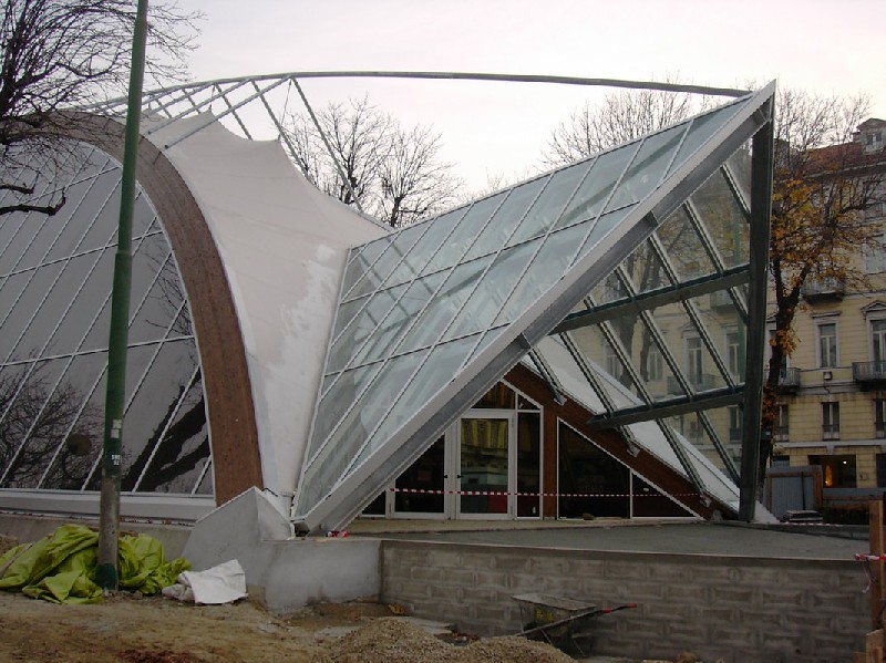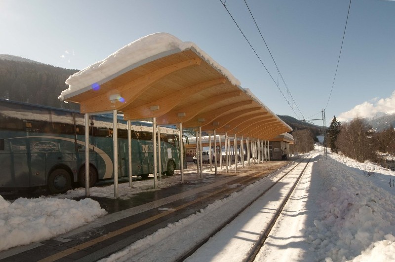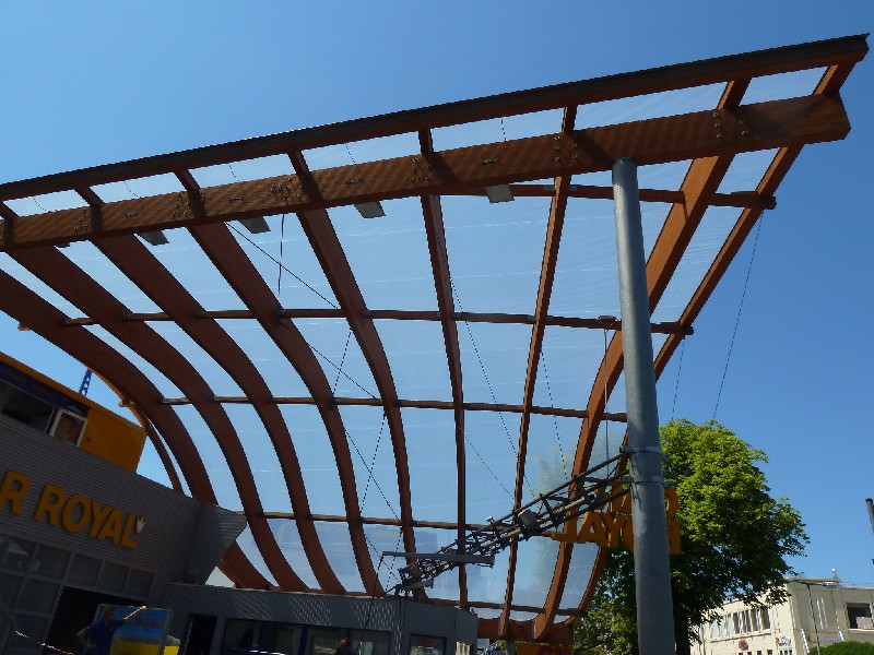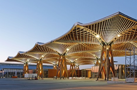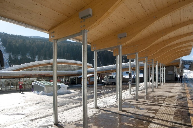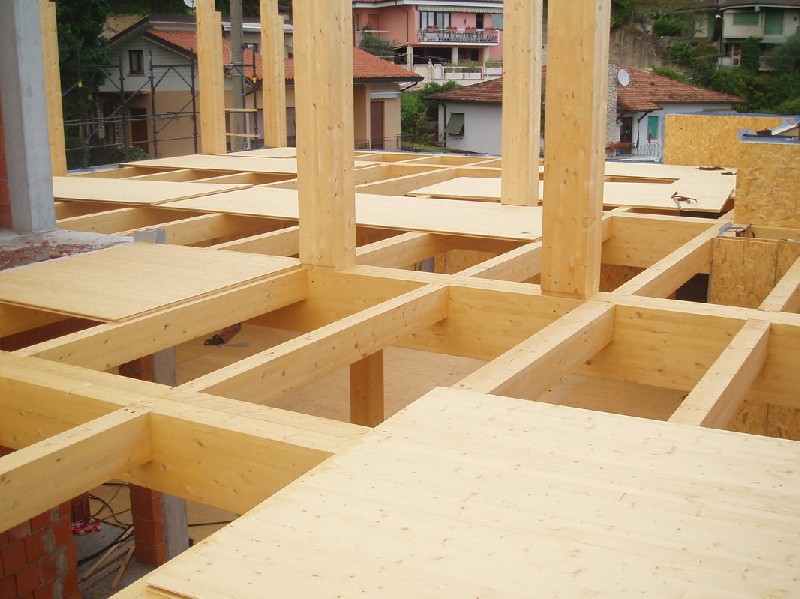 No exterior se utiliza cada vez mais madeira MLC na construção de aparelhos urbanos tais como aeroportos, mercados públicos, estações ferroviárias e rodoviárias, bibliotecas, teatros, galerias, etc. Isto, pois, além da beleza a madeira MLC possibilita a construção de estruturas com grandes vãos livres, que normalmente são necessários nesse tipo de obra. Indiscutível, também, a praticidade e rapidez na montagem das estruturas em madeira MLC, sendo que as vigas e pilares seguem praticamente prontas para montagem nas obras.