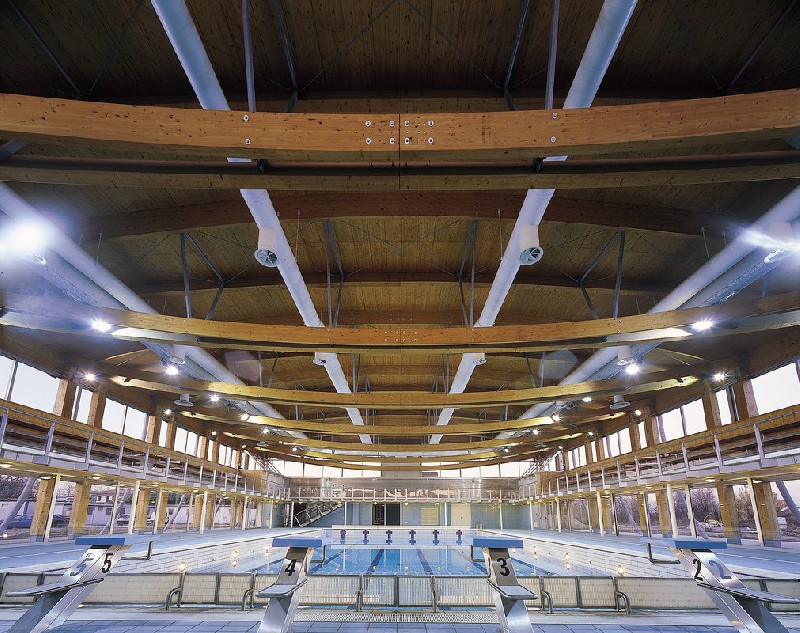Outro aspecto importante de se considerar, é que a utilização da madeira aumenta a qualidade acústica local, uma vez que estruturas de aço são mais suscetíveis a produzir eco, tornando a prática dos esportes desconfortável, assim como para os espectadores.