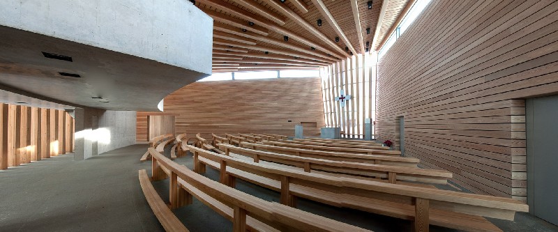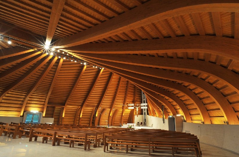 A possibilidade de erigir estruturas grandiosas é uma das principais vantagens de se utilizar a madeira MLC na construção de templos religiosos. Igualmente o aspecto visual é sobremaneira importante.